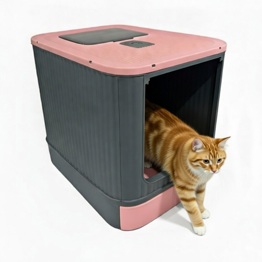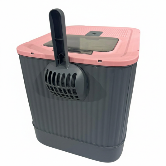 Arenero para gato Cerrado Gris con tapa Rosa