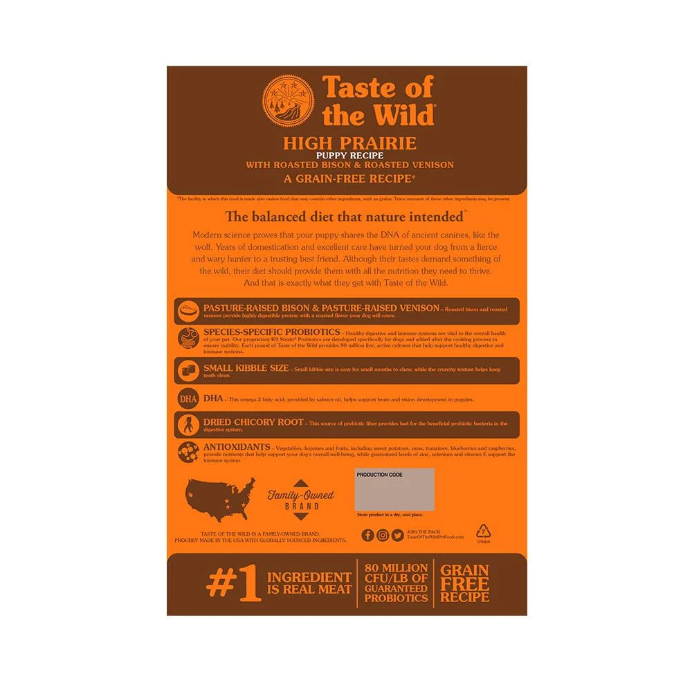 Receta Grain-Free para cachorros basada en Bisonte y Venado con DHA.