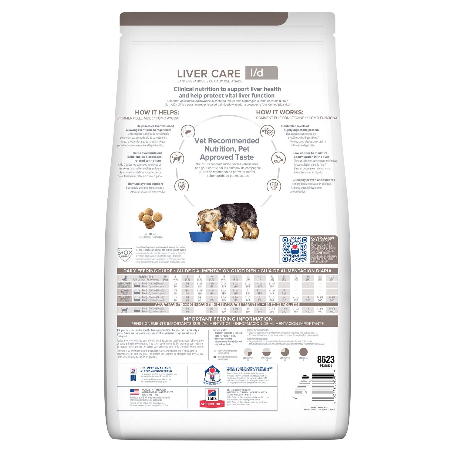 Alimento clínico seco diseñado para perros con problemas hepáticos. Ayuda a la regeneración del tejido y reduce la carga metabólica.