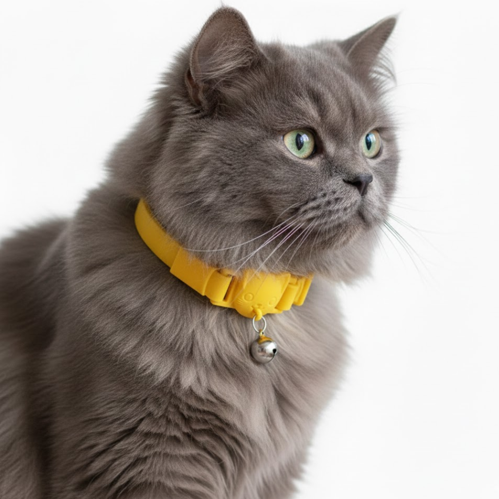 Collar para gato en goma PVC flexible con broche de seguridad de apertura automática.