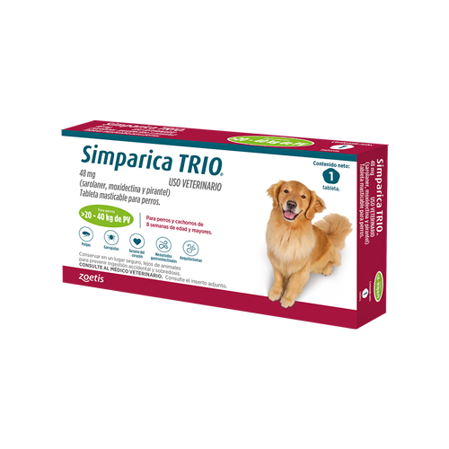 Antiparasitario premium de amplio espectro para perros de 20 a 40 kg. Tableta masticable mensual.