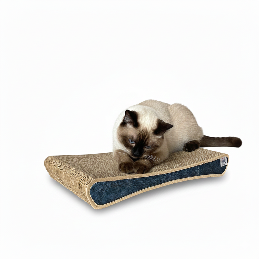 Rascador Curvo MarcaGato Azul: Doble Pared, Reversible y Compacto